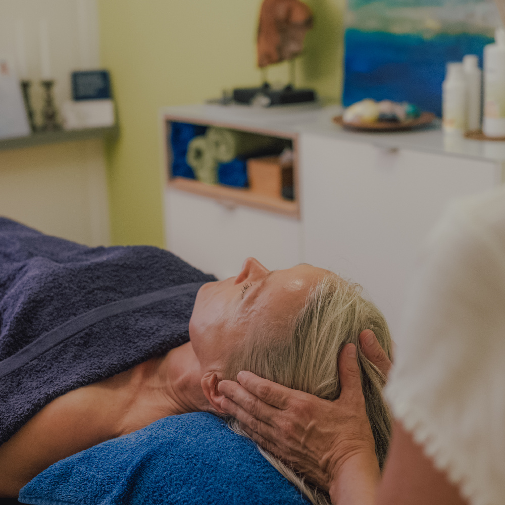 Diese ganzheitliche Massage löst sanft Verspannungen im Kopf-, Hals-, Nacken- und Schulterbereich und entspannt den Kiefer. Feine, gezielte Berührungen aktivieren Meridiane, Nervenzonen und Lymphbahnen.